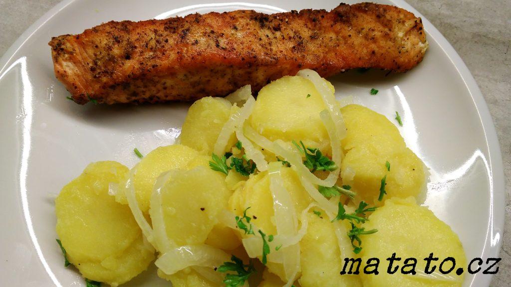 Brambory uvaříme v osolené vodě ve slupce, následně oloupeme a nakrájíme dle libosti (např. na kolečka). Cibuli oloupeme, nakrájíme na tenčí půlkolečka a spaříme horkou vodou a vsypeme do mísy s nakrájenými brambory. V hrnci na plotně připravíme zálivku: trochu vody, oleje, octu, lžíci soli a trochu pepře. Vše za stálého míchání provaříme, aby se všechny suroviny spojily. Touto zálivkou přelijeme brambory s cibulí v míse a zamícháme. Je možno konzumovat i za tepla, ale odležený a chladný bramborový salát má výraznější chuť. Můžeme ozdobit čerstvou petrželkou nebo pažitkou.